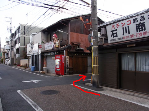 ③ 1筋目の角、”ハイカラ亭”さんの手前を右に曲がる
