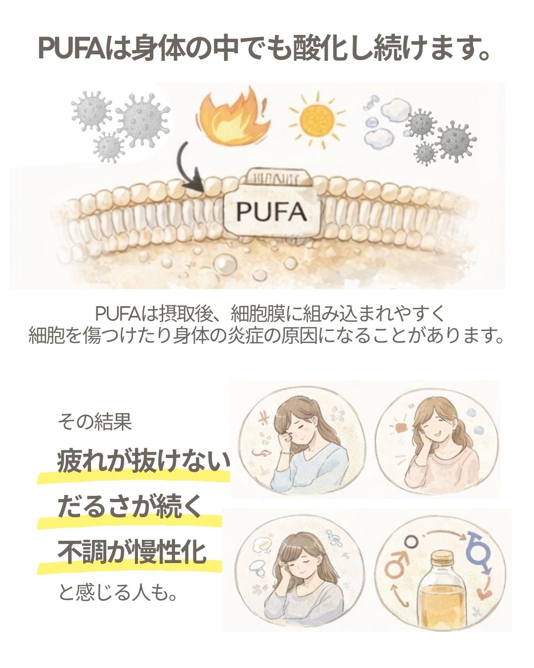 PUFA(多価不飽和脂肪酸)**についてお話しします。