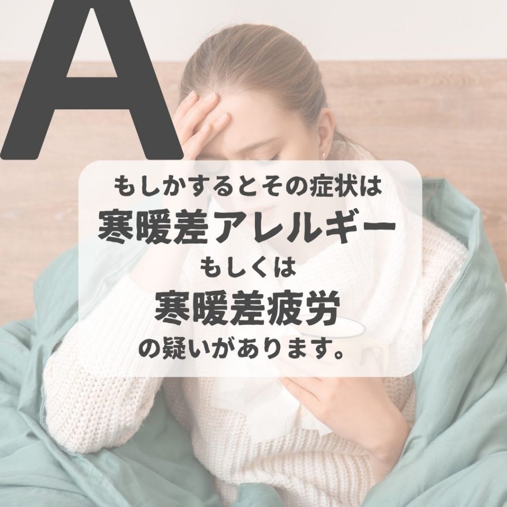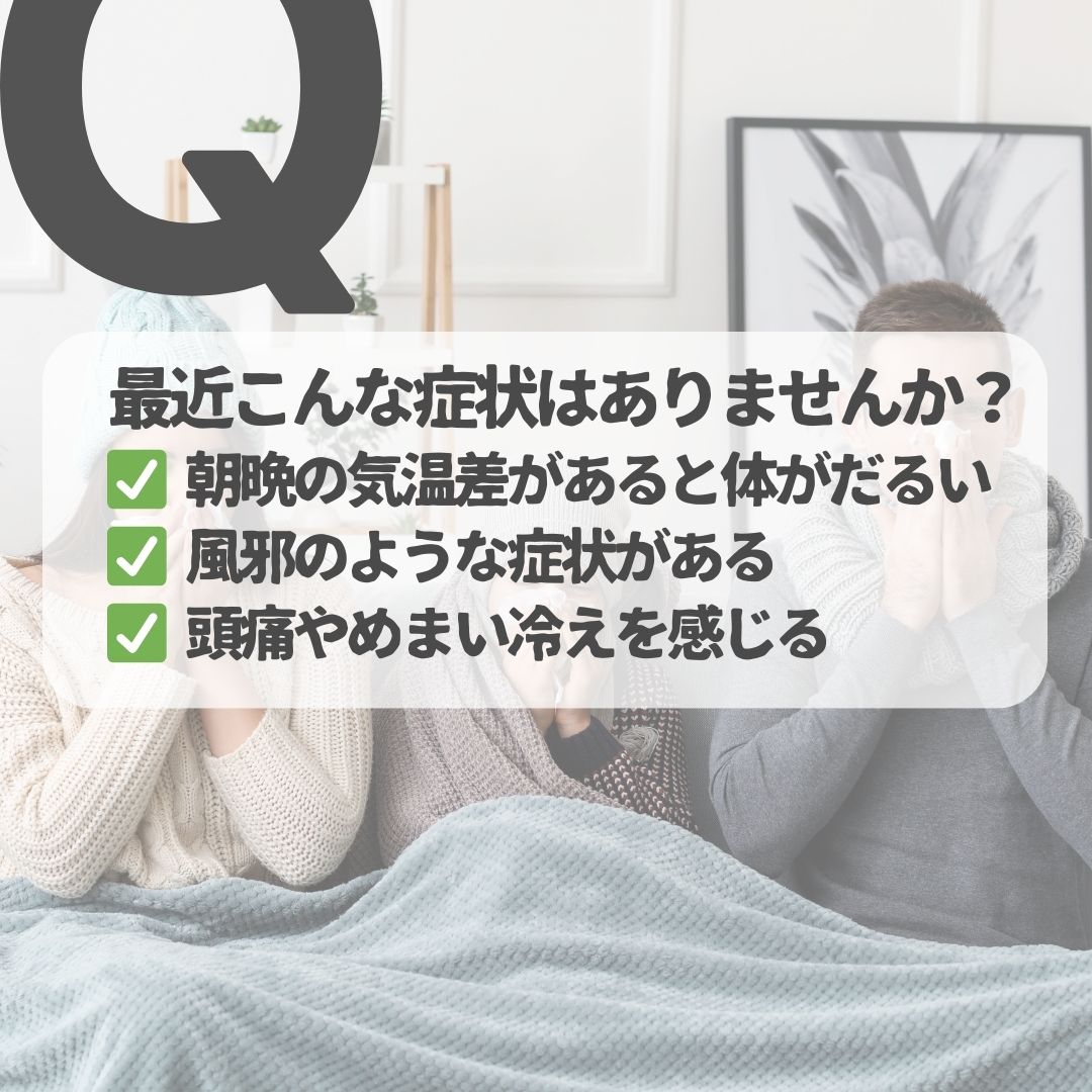 朝晩の気温差や前日との寒暖差が大きくなるこの季節、 「寒暖差アレルギー」や「寒暖差疲労」 に悩まされていませんか?