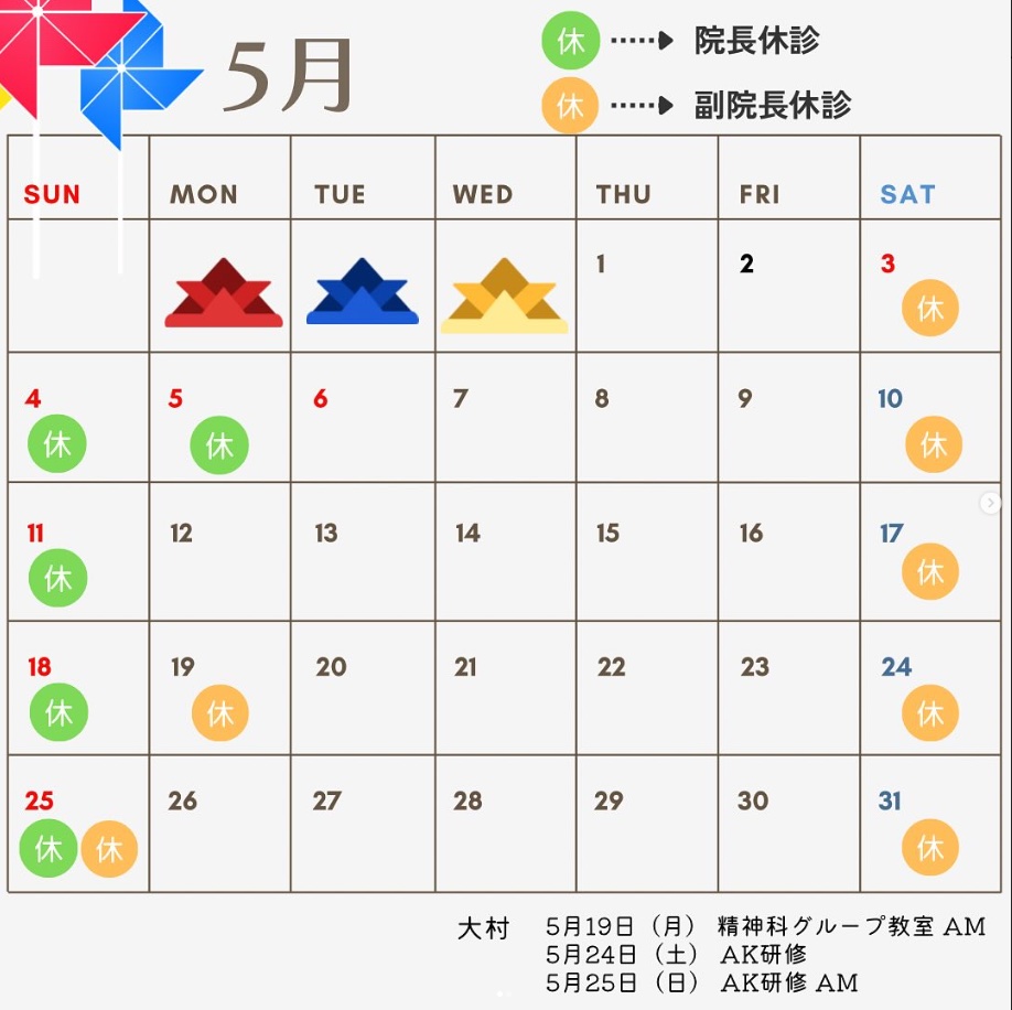 5月の休診予定をお知らせいたします。