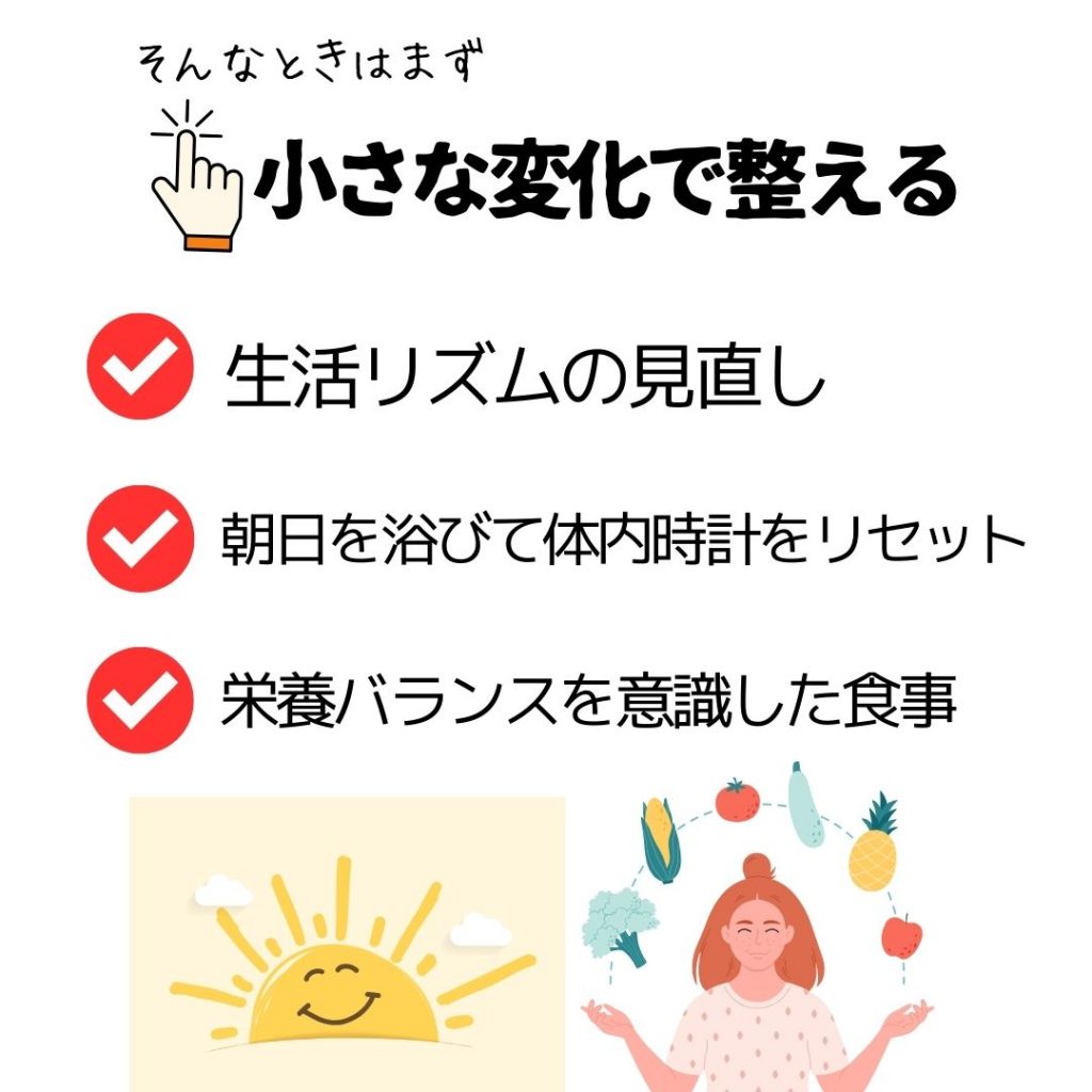 こんな症状が気になる方は、まずは生活リズムや食事、運動を見直してみましょう。