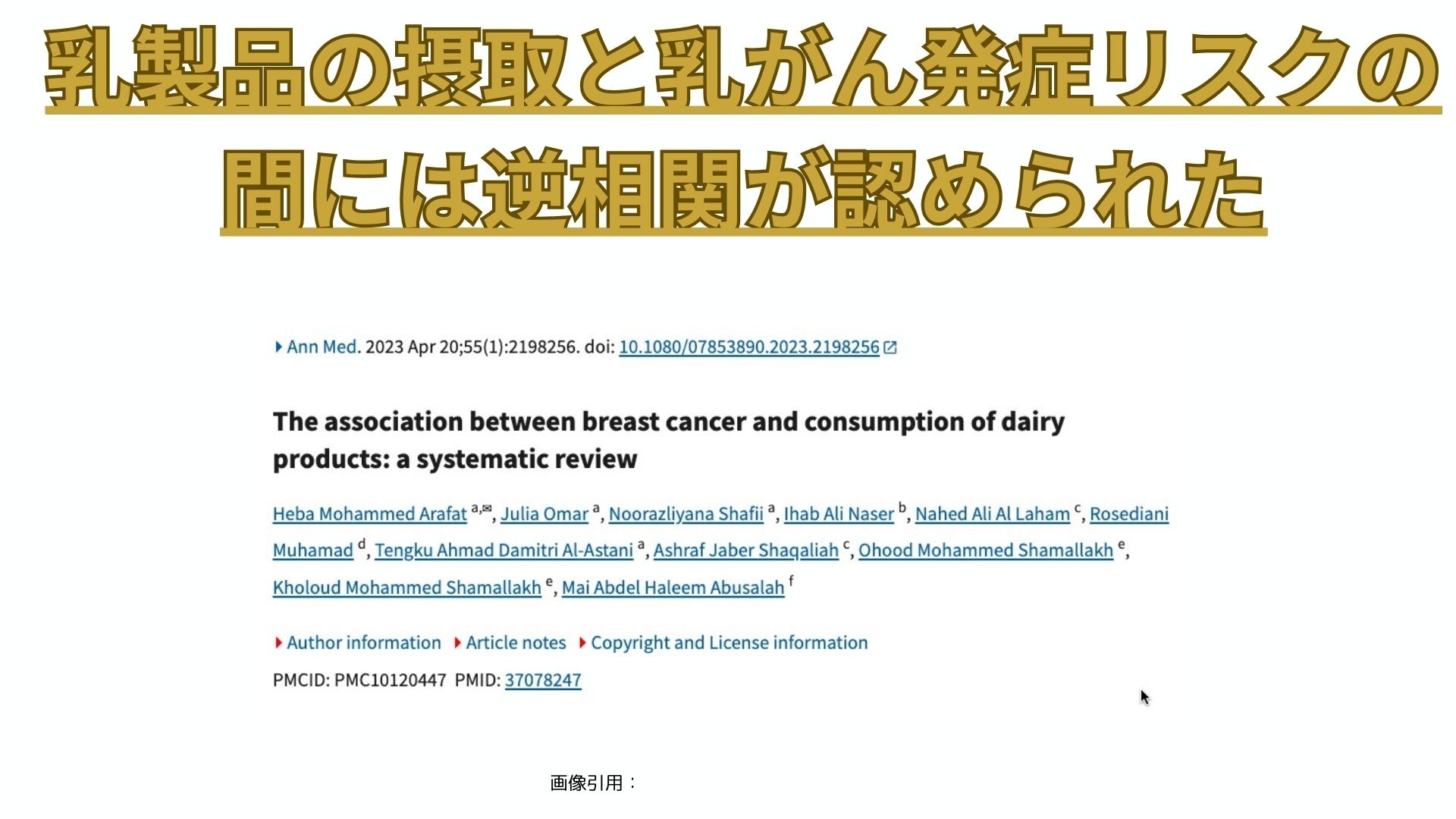また、乳製品を摂取することで乳がんのリスクが低下するという報告もあり、意外に感じる方もいるかもしれません。