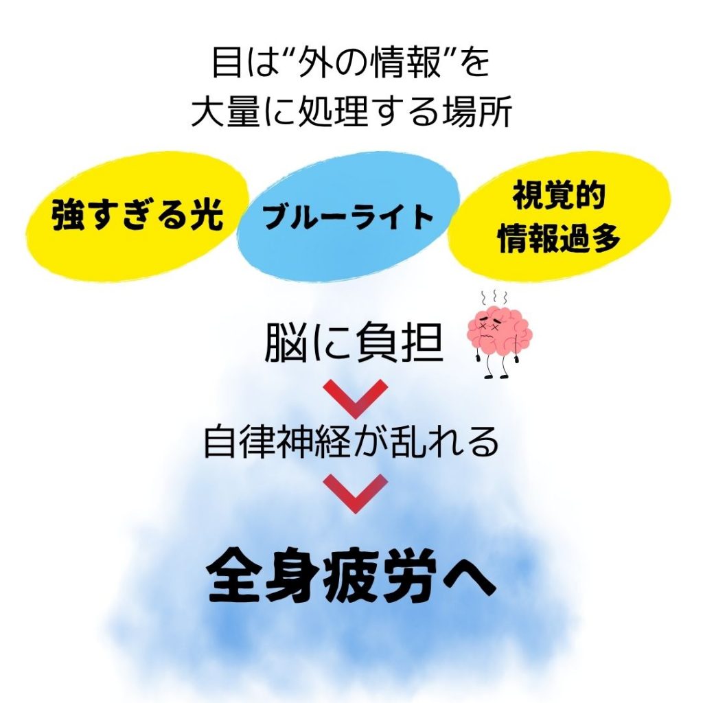 強い光、ブルーライト、情報過多が続くと、脳や自律神経に負担がかかり、全身疲労へつながります。