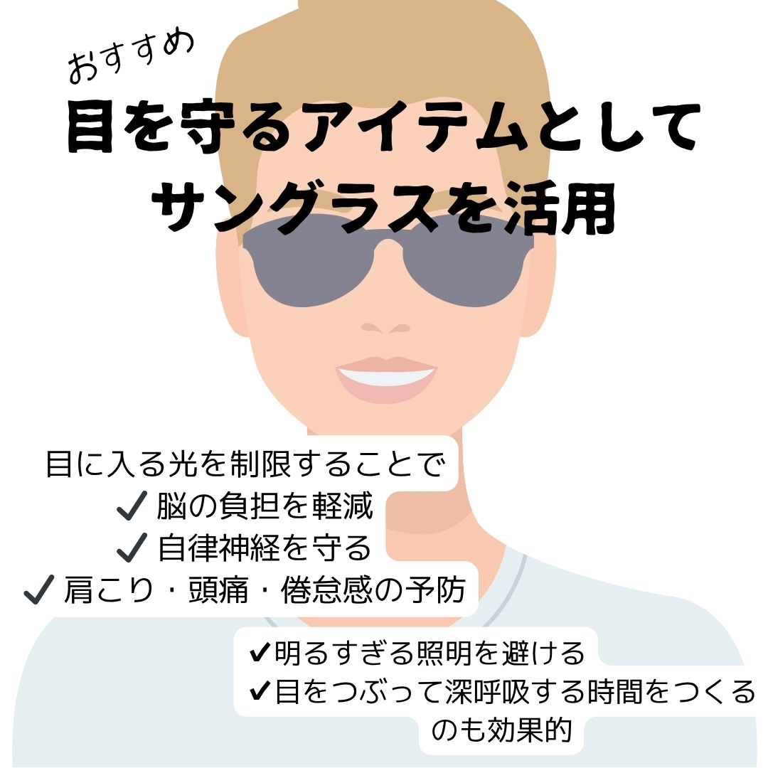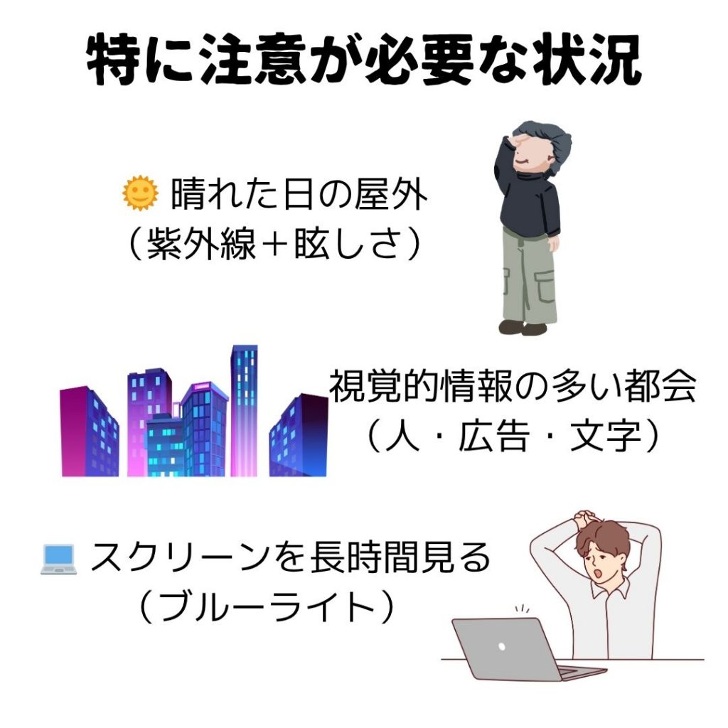 🕶️ サングラスの活用や目を休ませる習慣が、疲れを軽減するポイントです。