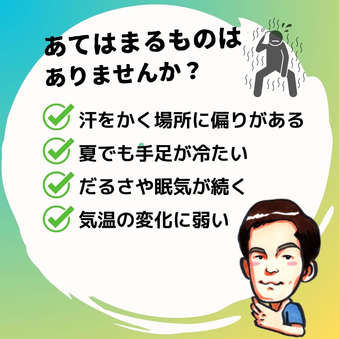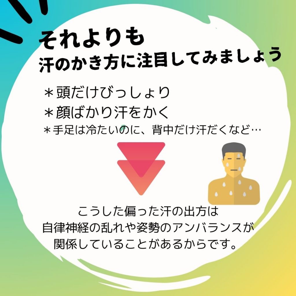 さらに、**「どこに汗をかくか」**が、体のバランスや自律神経の状態を映し出すこともあります。