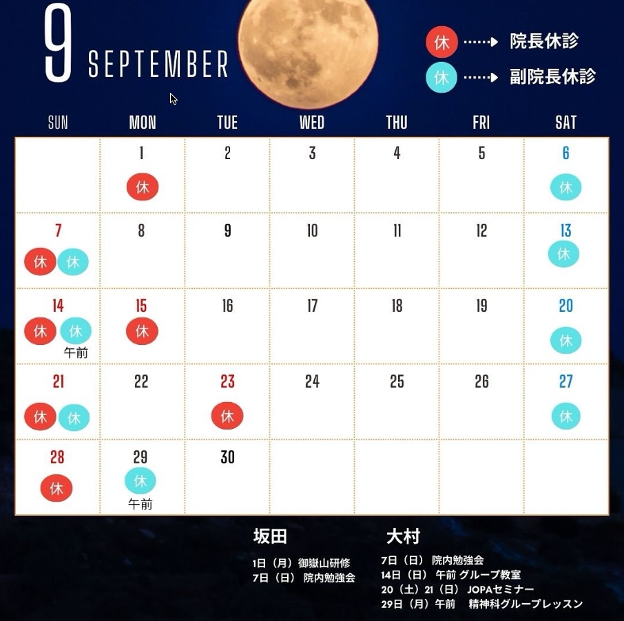 副院長(水色の休):6・7・13・14(午前)・20・21・27・29(午前)