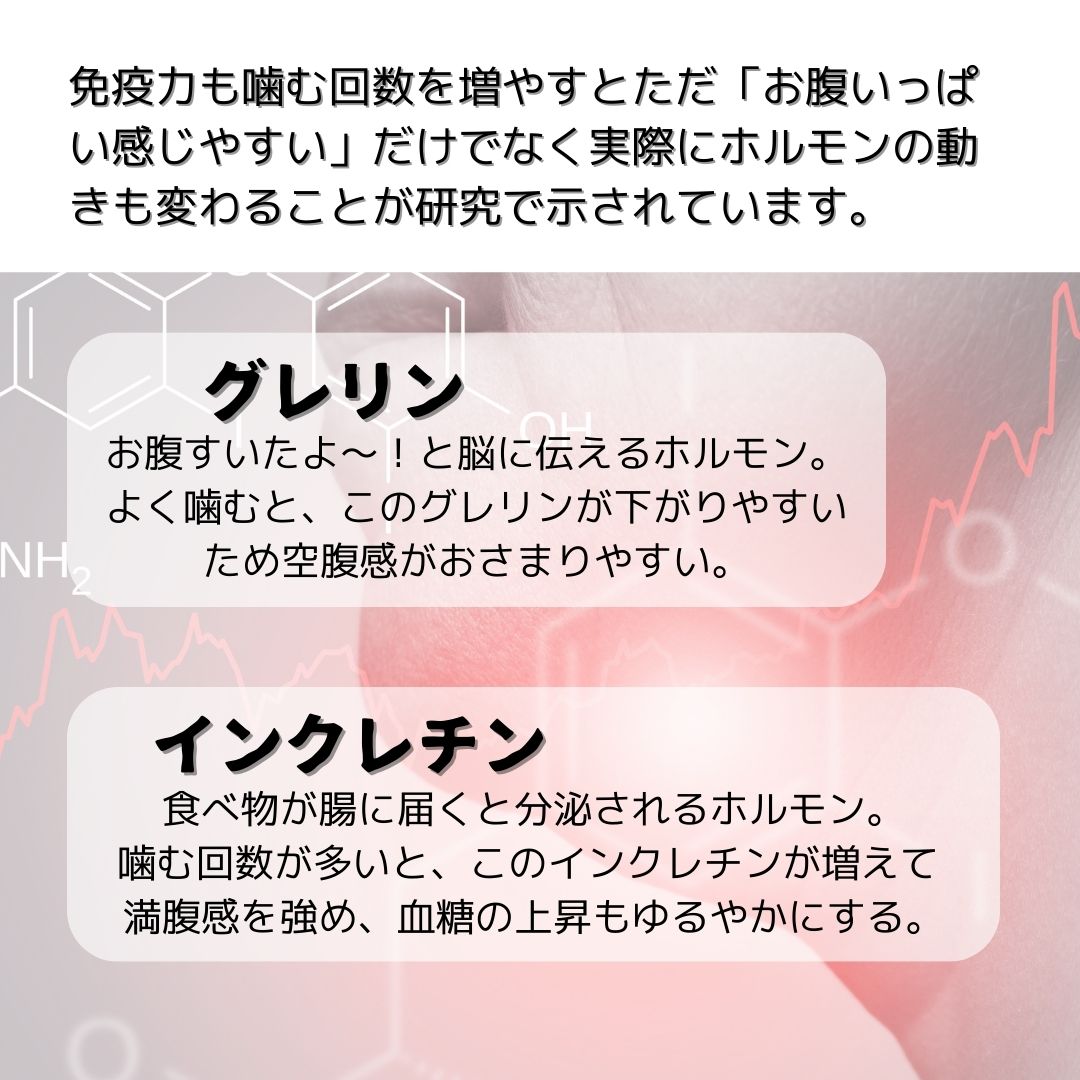 さらに噛むことで満腹ホルモンが分泌されやすくなり、食べすぎ防止にもつながります。