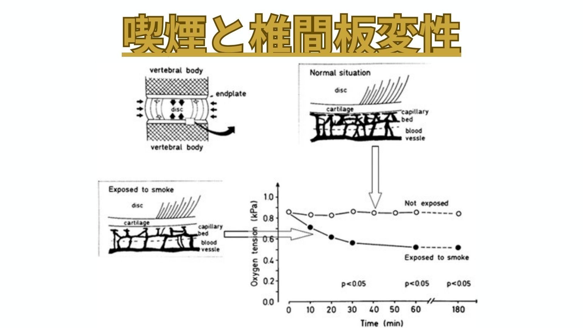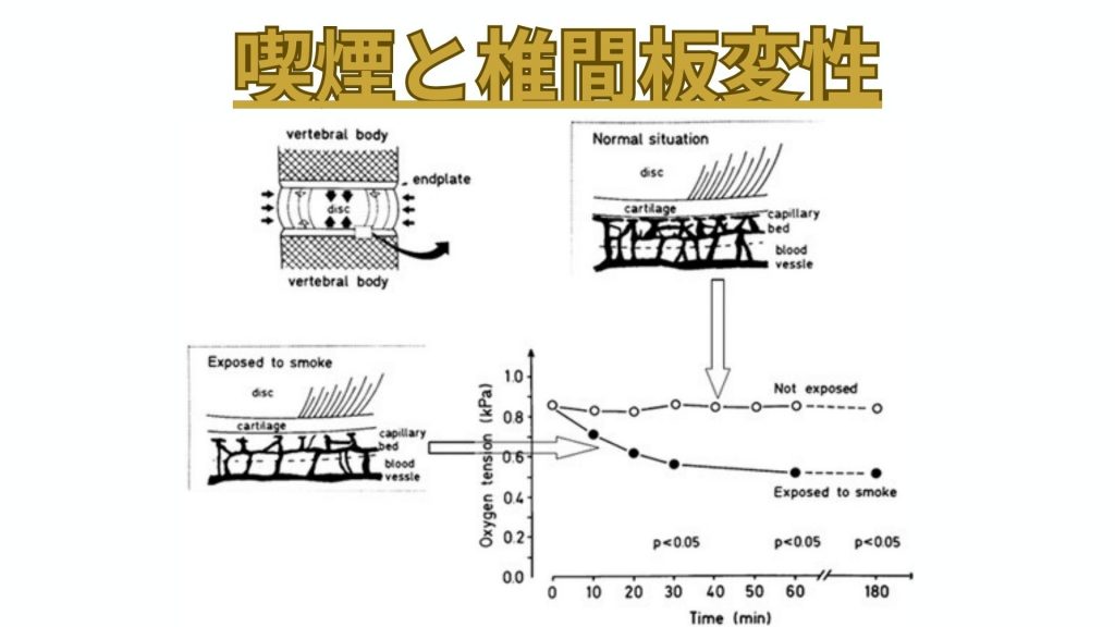 喫煙は微小循環を悪化させ、椎間板への酸素供給を低下させます。その結果、細胞の修復能力が低下し、変性が進行します。禁煙することが椎間板の健康を保つために重要です。