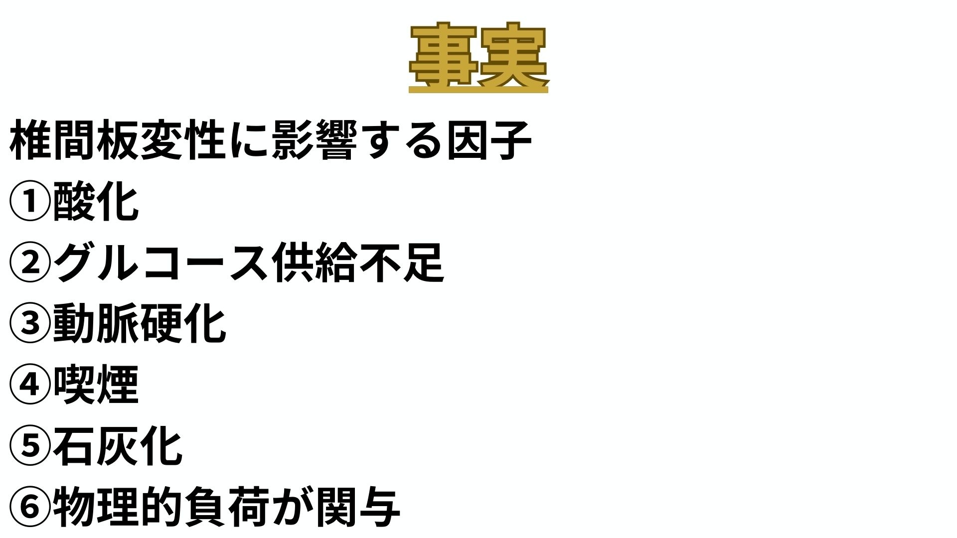 椎間板変性を引き起こす要因はいくつかありますが、特に以下の6つが重要です。