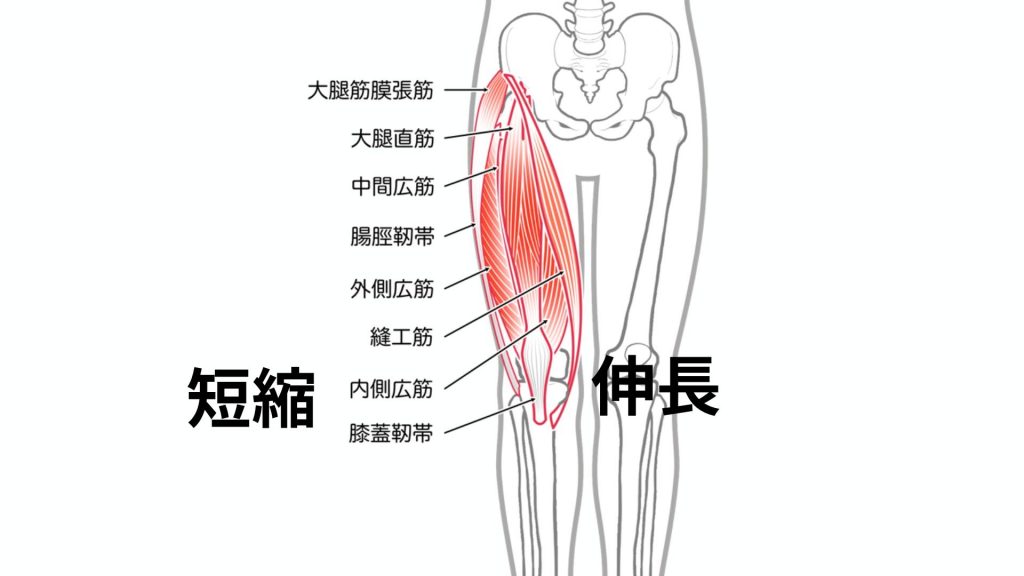 太ももの内側や外側の筋肉、膝周囲の靭帯・筋膜などが一方向に短縮・癒着している場合、X脚のような見た目になります。