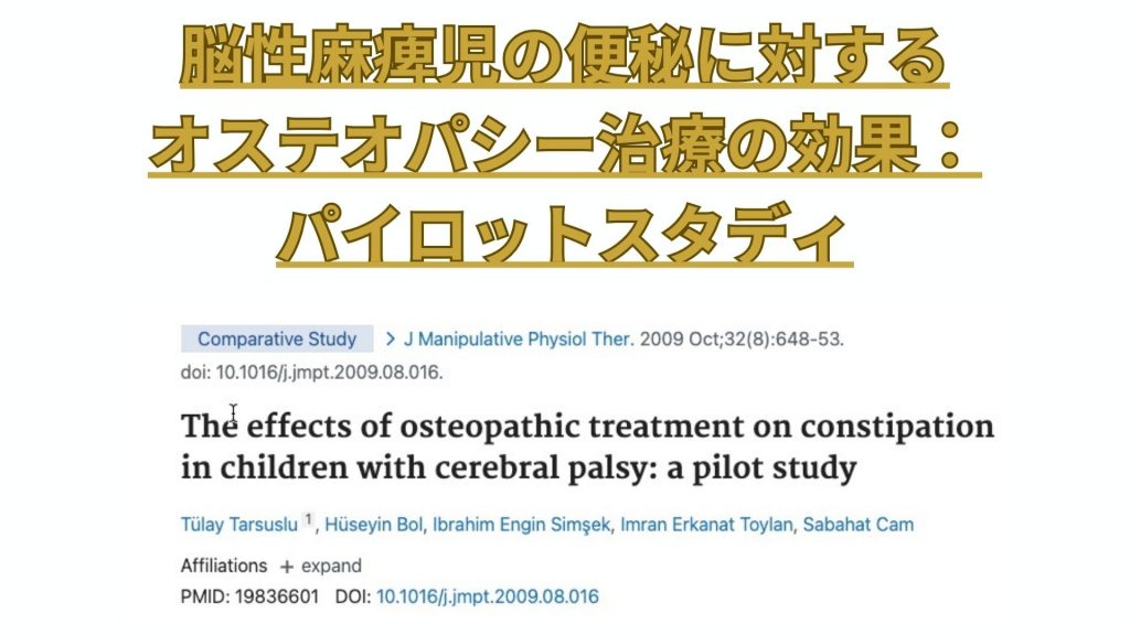 脳性麻痺の子どもは、筋緊張の異常や活動量の低下により便秘になりやすい傾向があります。あるパイロットスタディでは、便秘の代替治療としてオステオパシーが有効である可能性が示唆されています。