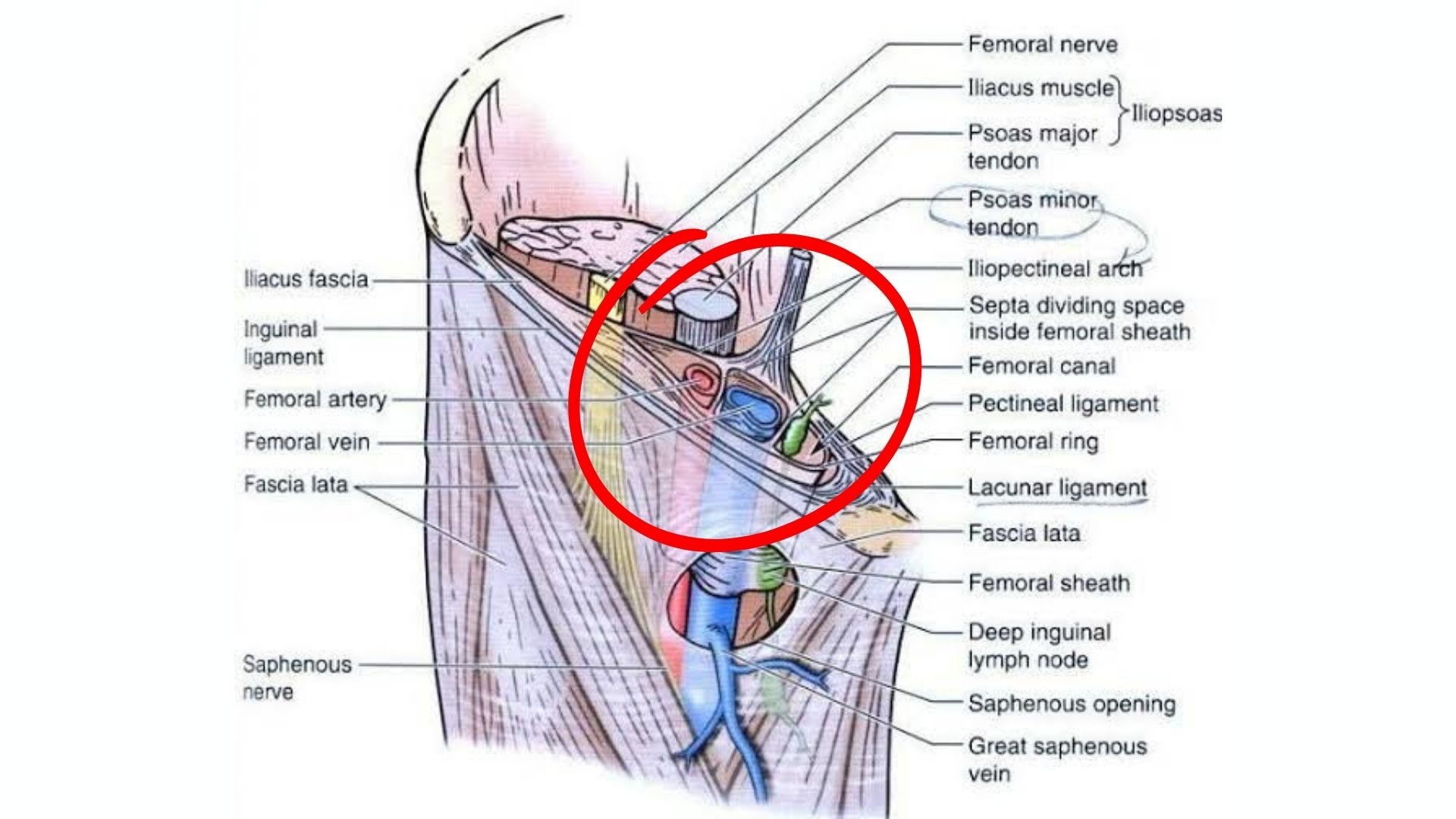 • *大腿神経(Femoral nerve)**はこれらの血管の外側に位置し、腸腰筋群と密接に関係します。