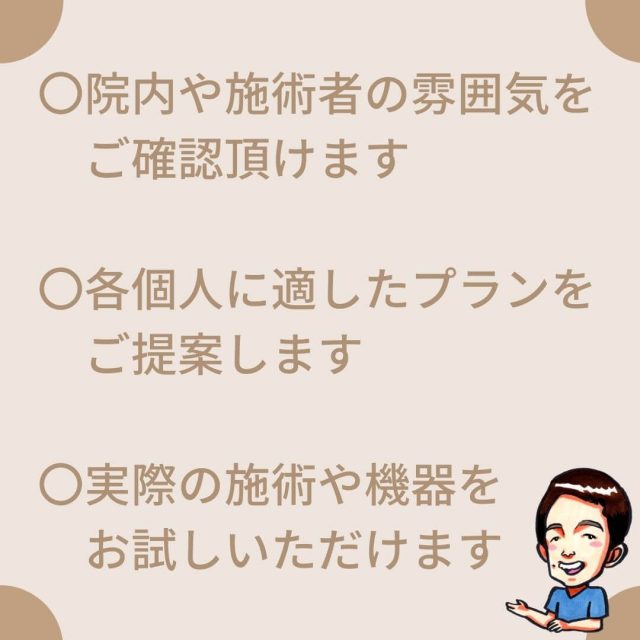 1)これまでの経過や、ご要望などを詳細にお聞きした上で施術を行うこと、
