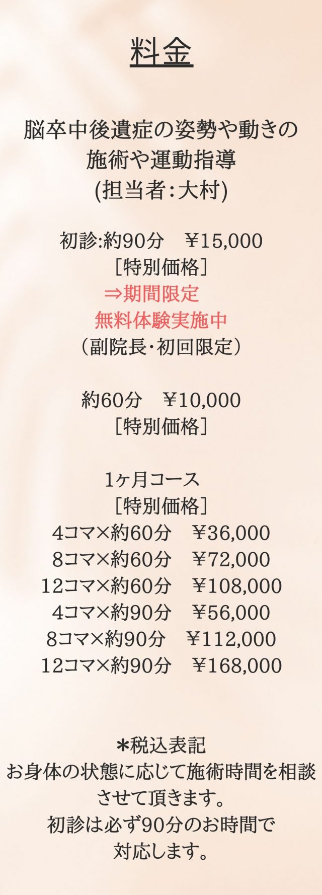 - 脳卒中後遺症 自費リハビリ 期間限定 無料体験実施中
