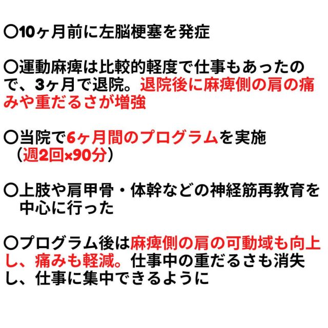 - 脳出血/50代/男性/非麻痺側の肩が上がらない!?